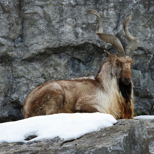 Beschreibung: Relativ große Ziege mit charakteristischen spiralig gewundenen Hörnern. Gewicht bis 110 Kilogramm bei einer Körperlänge ohne Wedel (15 cm) von bis zu 1,70 Metern und einer Schulterhöhe bis 1 Meter. Bock besitzt in der Winterdecke lange, starke Mähne und einen Bart.