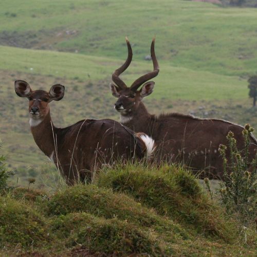 Beschreibung: In Größe und Aussehen dem Großen Kudu ähnlich, allerdings mit weniger Seitenstreifen. Die Hörner sind lang, schwer und öffnen sich in zwei offene Spiralen.