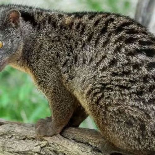 Beskrivelse: Palm civet er et lille, kødædende pattedyr med en slank, lang krop og en tyk pels, der varierer fra gråbrun til rødbrun. De har en karakteristisk lang hale og sorte striber eller pletter på kroppen. Størrelsen varierer, men de vejer normalt mellem 2-5 kg og har en skulderhøjde på cirka 40-50 cm. De har et markant ansigt med en lysere snude og mørkere øjne. Palm civeter er nataktive og meget sky, hvilket gør dem svære at få øje på i naturen.