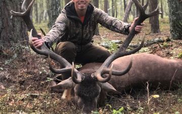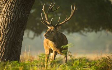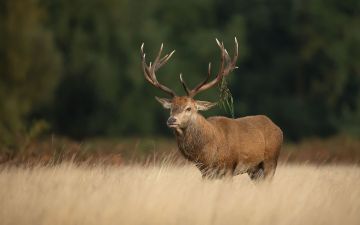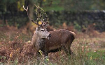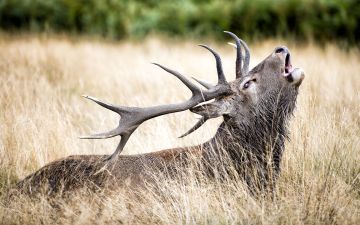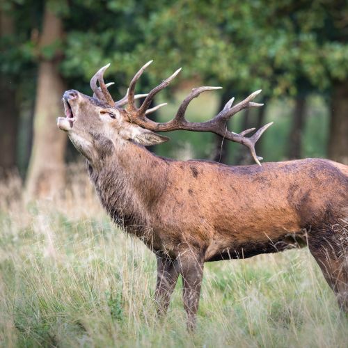 Beschreibung: Große Hirschart mit einem Körpergewicht von über 300 Kilogramm und einer Schulterhöhe von über 1,50 Metern. Generelle Deckenfarbe im Sommer rotbraun (Rotwild), im Winter grau bis graubraun. Das Geweih ist, von der Rose ausgehend in der Regel mit Aug-, Eis- und Mittelsprosse ausgestattet. Darüber kann eine vielendige, meist dreidimensional angelegte Krone folgen.