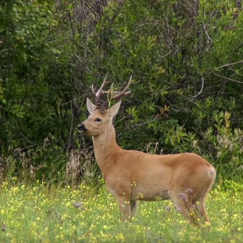 Beschreibung: Großes Reh mit einem Körpergewicht bis 60 Kilogramm (Unterart pygargus ist die körperlich stärkste), einer Länge von 1,50 Meter und einer Schulterhöhe von bis zu 1 Meter. Geweih wesentlich stärker als beim Europäischen Reh mit Maximalgehörngewichten von über 1,3 Kilogramm. Deckenfarbe ähnlich dem Europäischen Rehwild.