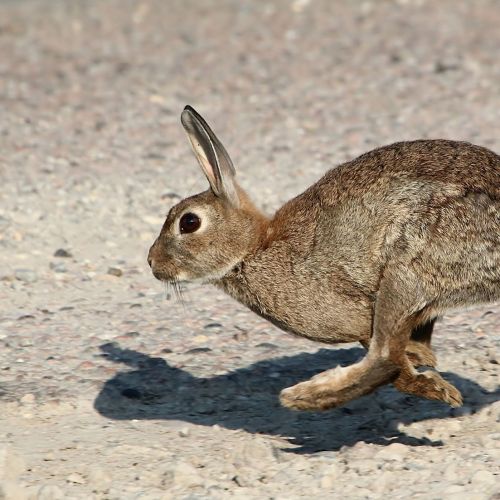 Beschreibung: Kleines graubraunes Säugetier mit langen Ohren, langen Hinterbeinen und kurzem flauschigen Schwanz. Länge zwischen 34-50 cm plus Schwanz 4-8 cm), Gewicht 1,1-2,5 kg