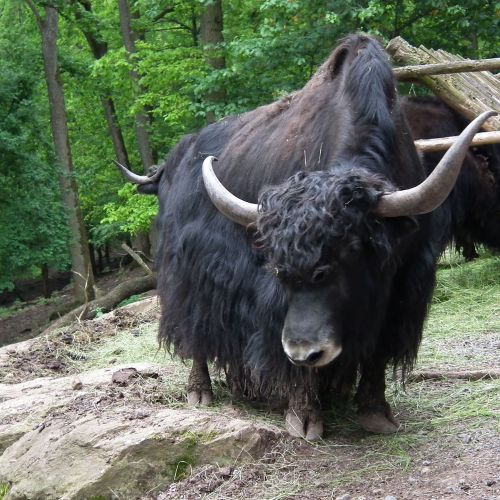 Beschreibung: An große Höhen und niedrige Temperaturen angepaßtes Wildrind mit langer, schwärzlicher Decke. Gewicht bis 800 Kilogramm bei einer Länge ohne Schwanz (85 cm) bis 3,50 Meter und einer Schulterhöhe bis 2 Meter.