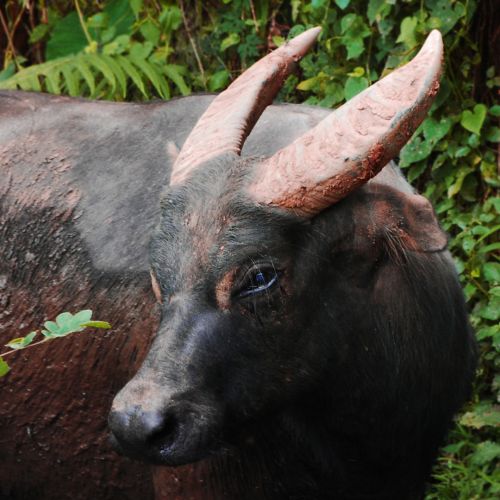 Beschreibung: Relativ kleines Wildrind mit einem Körpergewicht bis 300 Kilogramm, einer Länge ohne Schwanz (30 cm) von bis zu 1,80 Meter.